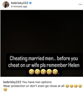 In his post, Bobrisky advised that cheating married men should either use protection or avoid getting involved with other women entirely, warning they could end up in a situation similar to that with Hellen.